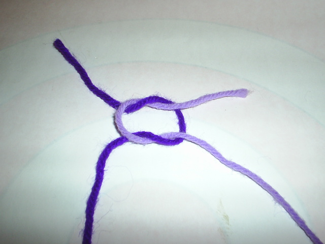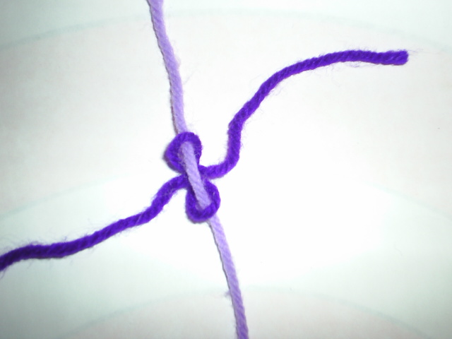 Then there is the Granny Knot. This is NOT a secure knot and will NOT hold. It goes: Right over right, right over right. Like this: