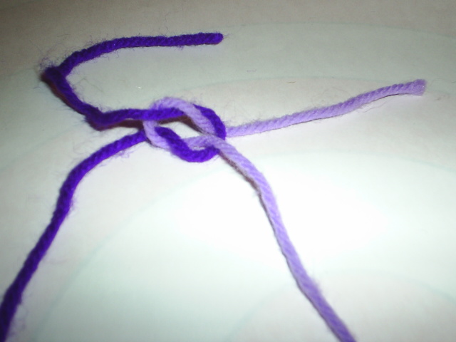 You’ll notice that the knot lays flat, looks like two strings looped around each other and the strings come out of the loops on the same side together.the nice thing about this knot is that it stays secure but can be easily undone when you want to, especially if the like is sturdy and rather stiff. just push the ends toward the knot to loosen the loops. On yarn like this, though, it isn’t as easy to loosen that way. You can often undo it easily by pulling sharply on just one end, which re-aligns the knot into a new configuration.