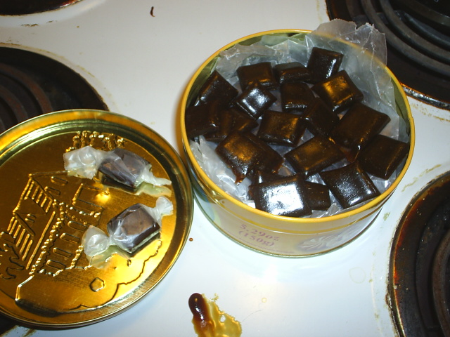 Just in time for Guy Fawkes Day. When I was a kid my Dad used to get treacle toffee imported from Britain. By the time I was in college I think he and I were the only people still buying it in town and it became impossible to find. I did find it once in Seattle and again in Florida years ago, but now I can’t find it even on the internet so I’m trying my hand at reproducing it. So far I’ve made three batches. The first had the right consistency and almost had the taste but was brown instead of black. The second was black but not quite the right taste and a very hard candy. This time it’s almost right, but I cooked it to hard crack stage instead of hard ball, so I guess I’ll just have to keep trying (darn!). So here it is: