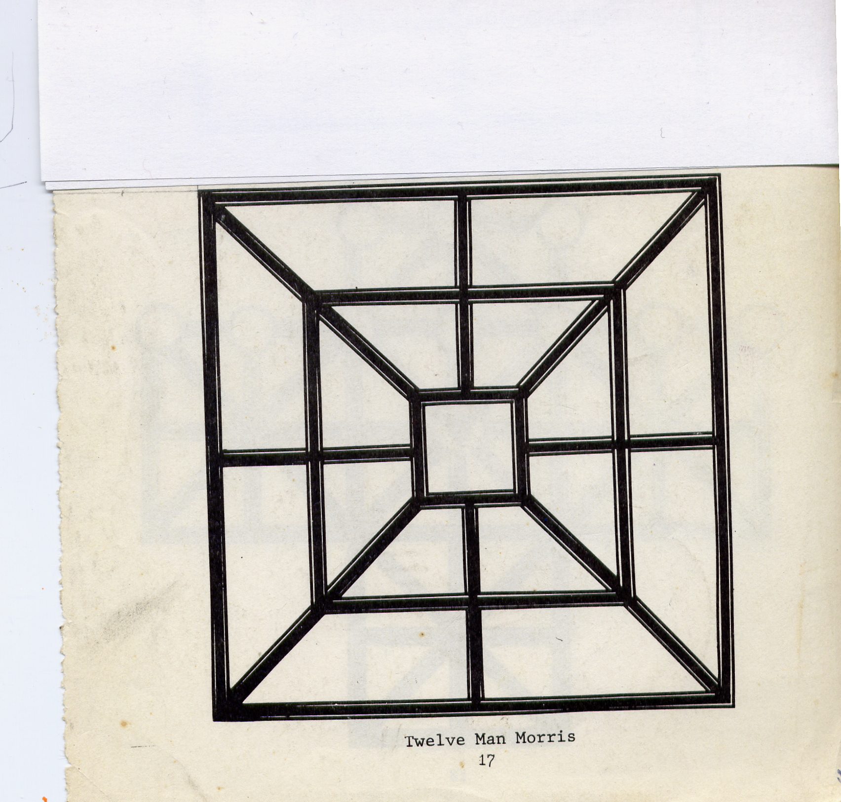What is 9 man morris? It’s an ancient form of tic-tac-toe, only more interesting. There are several versions. 9 holes, tic tac toe, 5 man morris, 9 man morris and 12 man morris. In tic tac toe you know the rules, 3 in a row etc… In the others you play on an expanded board with each player usually starting with the number of pieces in the title of the game. The markers/pieces can be stones, checkers, coins, whatever happens to be handy. Players take turns entering pieces on the points on the board trying to make a mil (3 in a row). Every time a player makes a mil they get to remove an opponent’s piece. A mil is 3 in a row. If there’s a choice of taking from an opponent’s mil or set of 2 or a single marker they must take from a non-mil first. Once all pieces are entered on the board players can start moving pieces along the lines to form more mils. Play continues until one player either gets down to 2 pieces or their pieces are blocked and can’t move, then that player has just lost. So…
