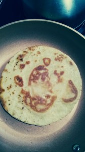 When done take it out and drain on a paper towel. At this point you can make it a desert by ignoring the cheese and sprinkling the fried tortilla with cinnamon and sugar. Honey’s good too, or jam, syrup, or melt bits of grated chocolate on it with a light sprinkling of powdered sugar.