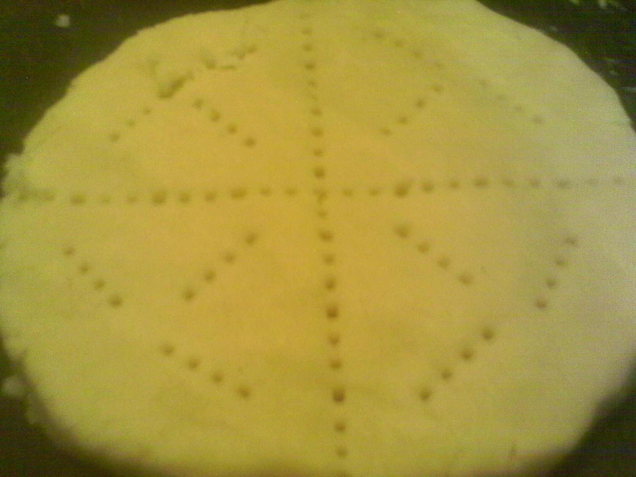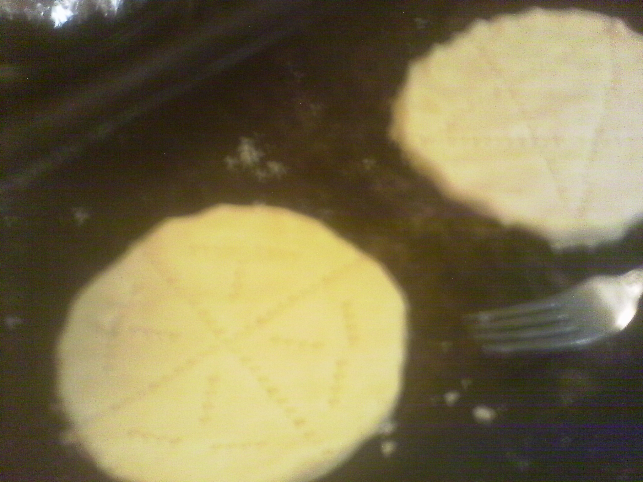 Now dock it to make it look pretty and cook evenly. What’s docking? Basically it’s poking a few holes in the cookie to keep it from becoming misshapen. You can make the docking in any decorative design you want.