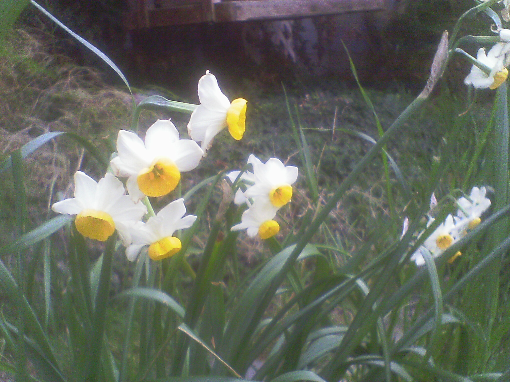Every year I worry, did the jonquils survive the summer? Every year they pop up in the fall. We bought this house in august 1997, moved in the day Princess Diana died. By late September or early October, in a small part of the front garden green things sprang up. I let them go, curious to see what they were. Eventually they flowered. Jonquils! Small, delicate daffodils! I put in the garden in front of the front porch and decided they’d do better there. They seem to like it. Not only have they survived, they’ve multiplied.