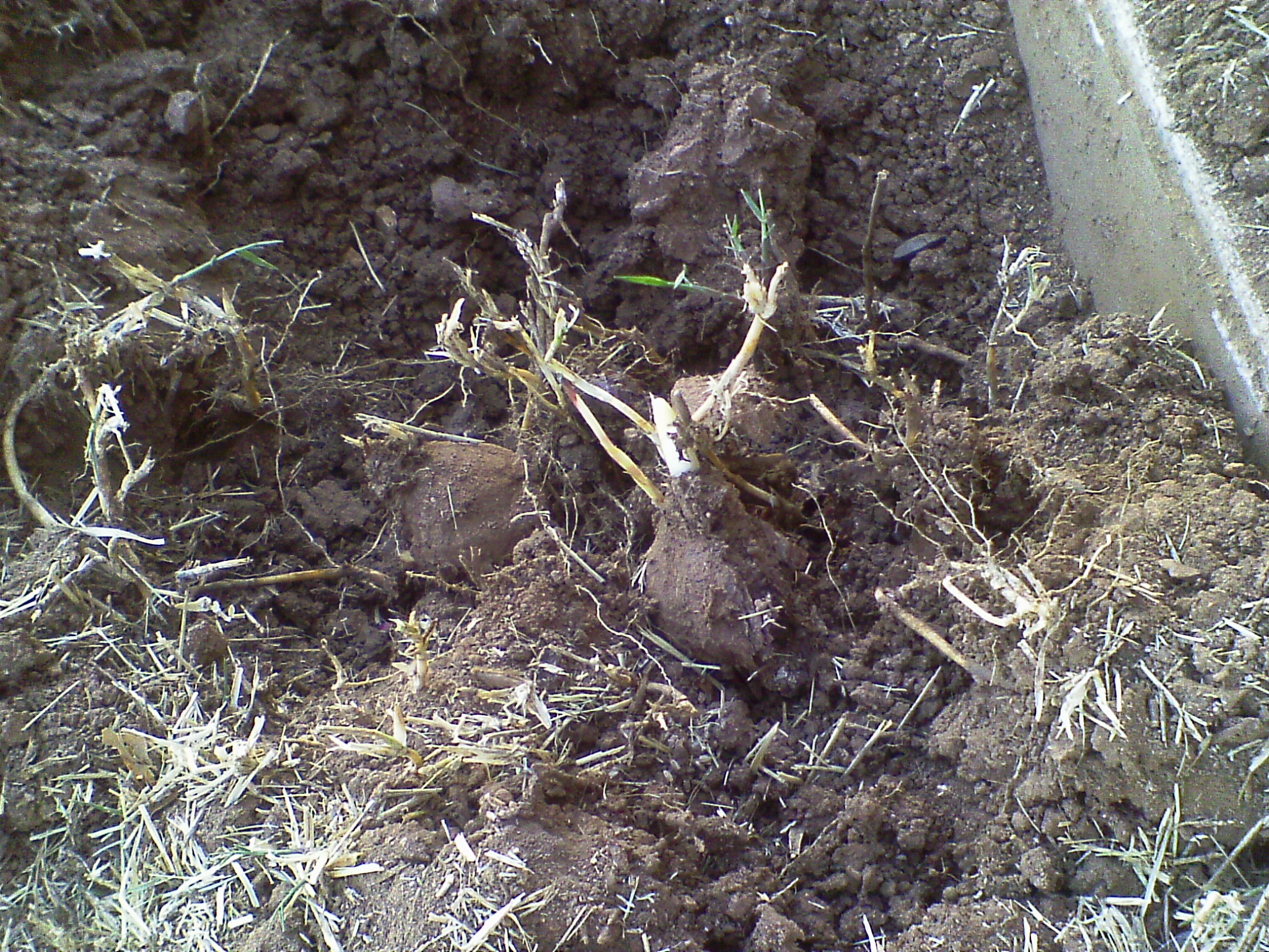 This year I had to reclaim that garden. Life happened and Bermuda grass took over, strangling everything but a miniature rose and a chocolate flower. I was again concerned for my sweet bulbs. 5 days of digging and pounding dirt from roots and tossing rhizomes aside and I finally got to the back of the garden by the porch. With every shovelful they came.