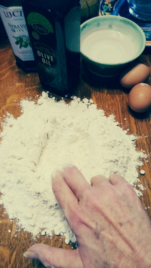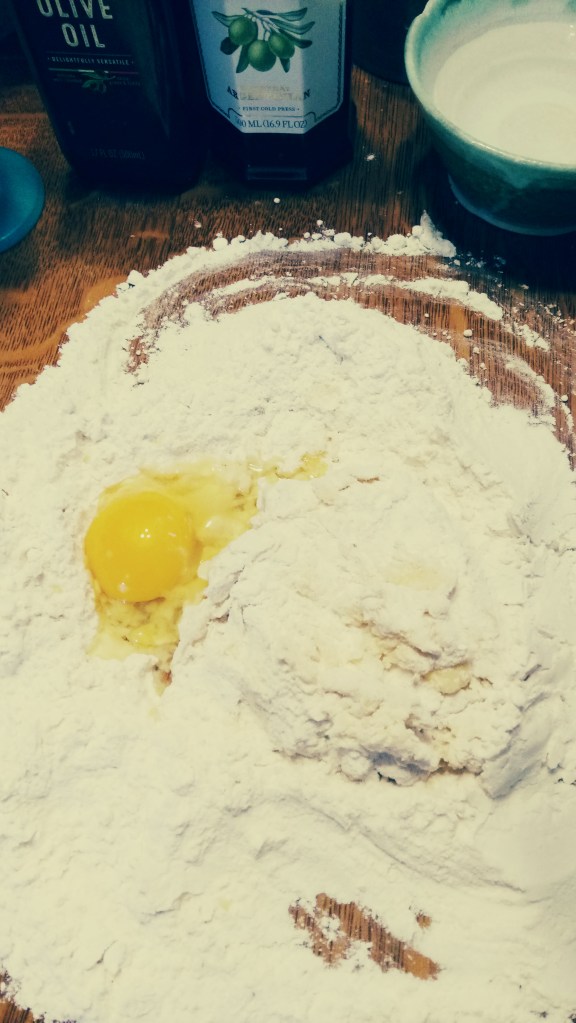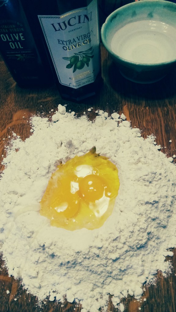 I’ve been meaning to try to make. Whether my great grandmother’s egg noodles or Italian style pastas, Next time I’ll try wide egg noodles for chicken soup or other configurations, but I’ve lately seen a few show do pasta and finally gave in. I’m off work for an extended period and finally feel up to fitting this into my busy day of recovering from ankle surgery. If I can make edible pasta on my 1st unsupervised attempt (OK, there was the cat), then so can you.
