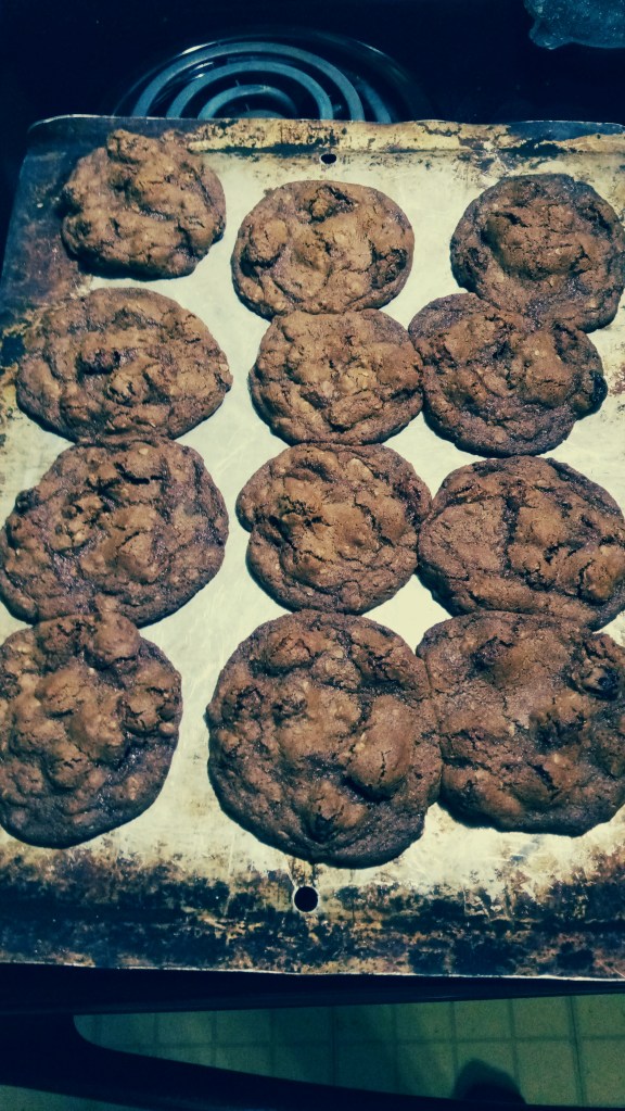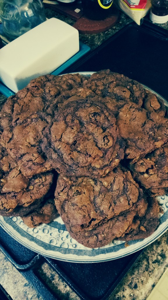 Serve with milk, tea or coffee. 2 is, of course, the proper number of cookies to serve, whether after lunch, school or before bed. These are even good for breakfast. Yes, these look dark but I did use dark brown sugar and let them go a minute or 2 long. Next time I’ll use light brown sugar and take them out when they’re almost done instead of absolutely done but not burnt.