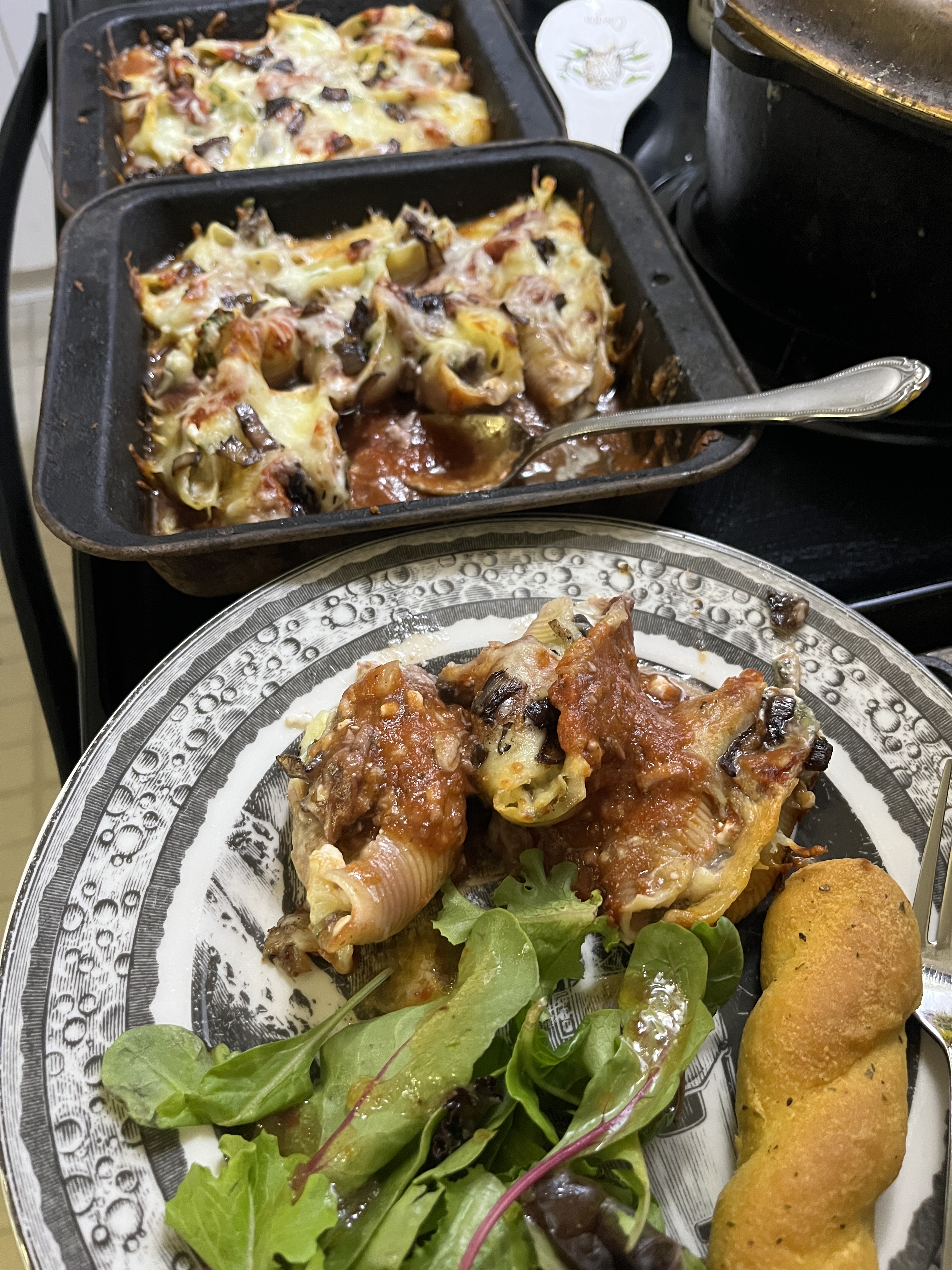 I don’t know which is easier, shells or lasagna. I just go back & forth. It’s something to do on an afternoon where nothing else was planned, I guess.