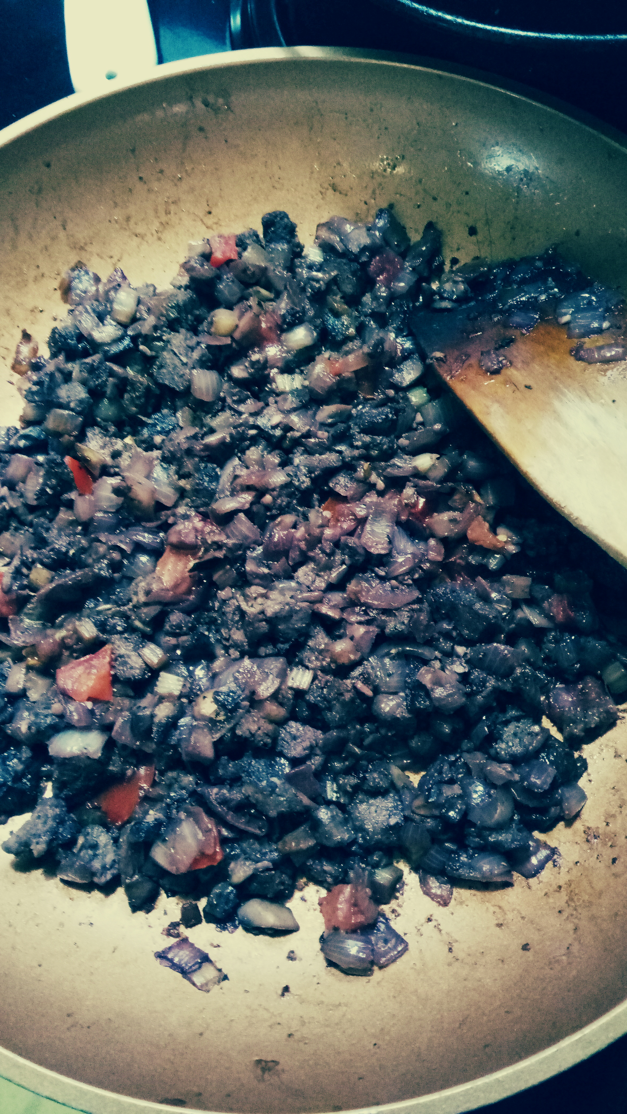 Add the cut up stuff to the 24oz tub of ricotta or cottage cheese, a good handful of grated mozzarella or provolone, about 1/4c to 1/3c grated parmesan cheese and 2 beaten eggs. Add whatever seasonings you feel work (garlic, oregano, parsley, pepper, basil, rosemary are good starts). Mix well and get ready to stuff.