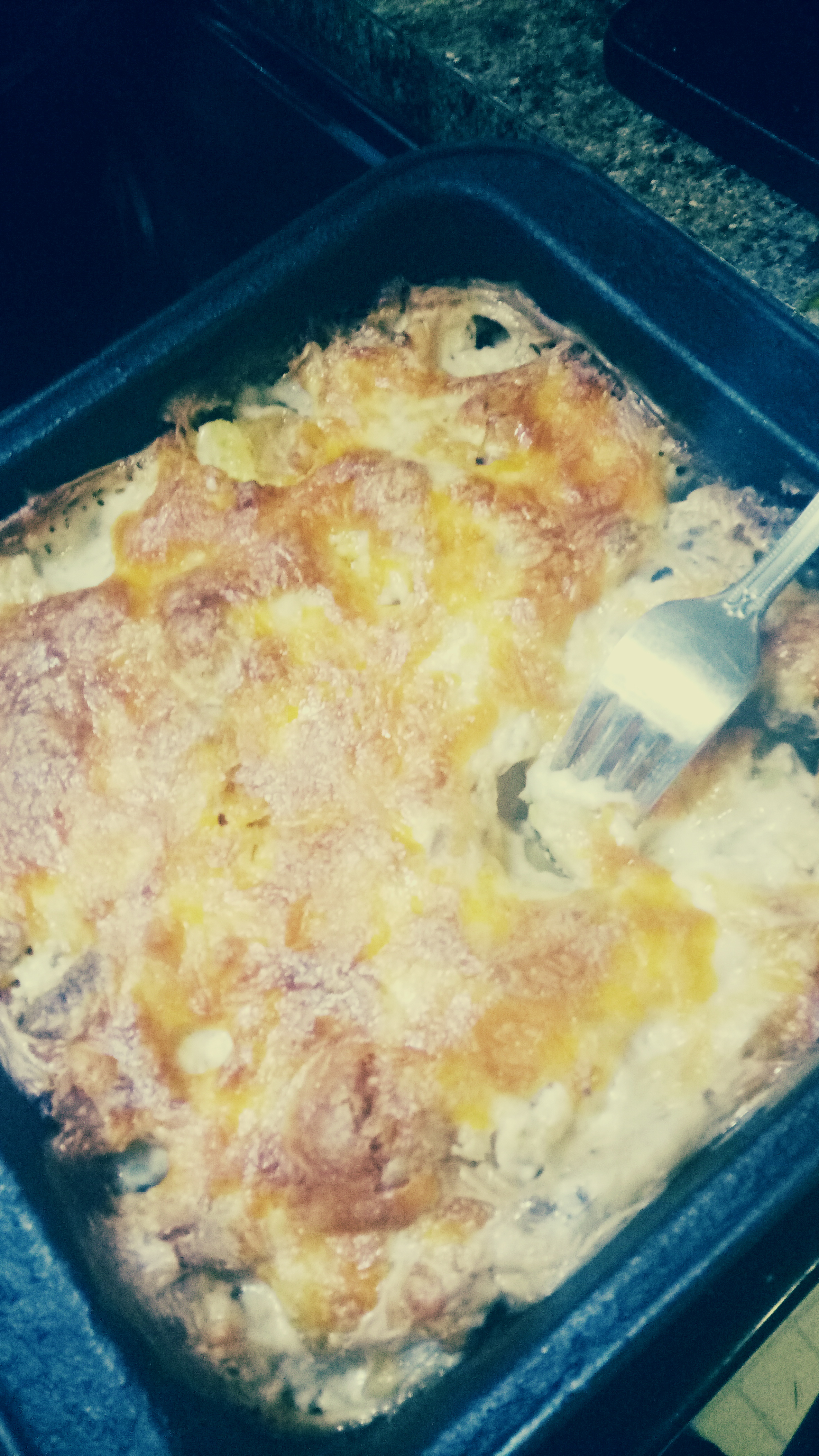 I had leftover pork and some new organic potatoes I’d bought from the store to plant and had more than I needed. What to do, what to do…casserole!