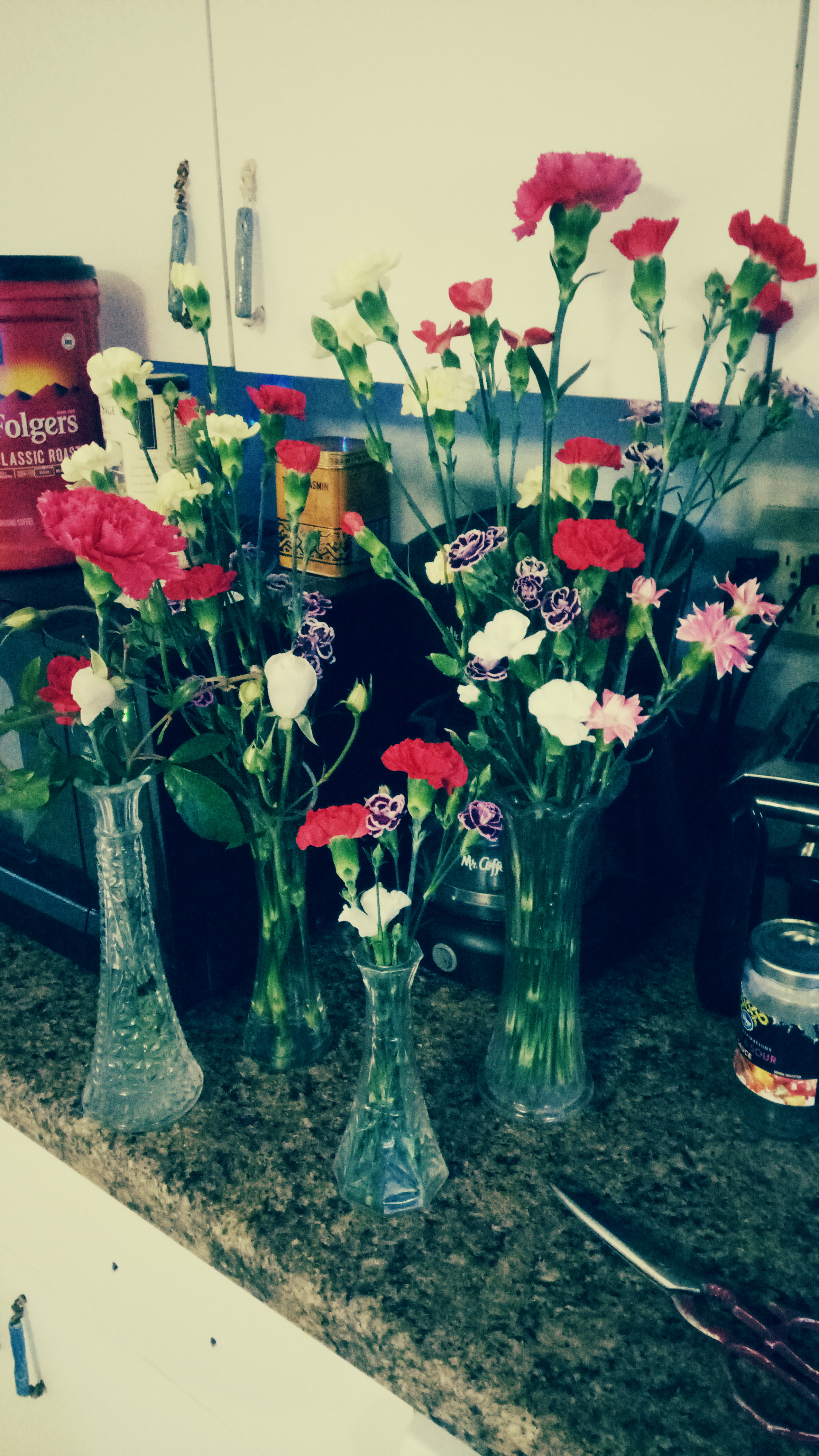 Realize that it’s Friday and run out for lottery tickets. Buy flowers on impulse, sort them into 4 arrangements then get back to cooking. What’s one more impulse buy at this point?