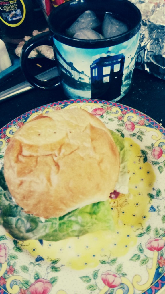 If you like lettuce and tomato on, add that and enjoy with the beverage of your choice from your favourite mug.