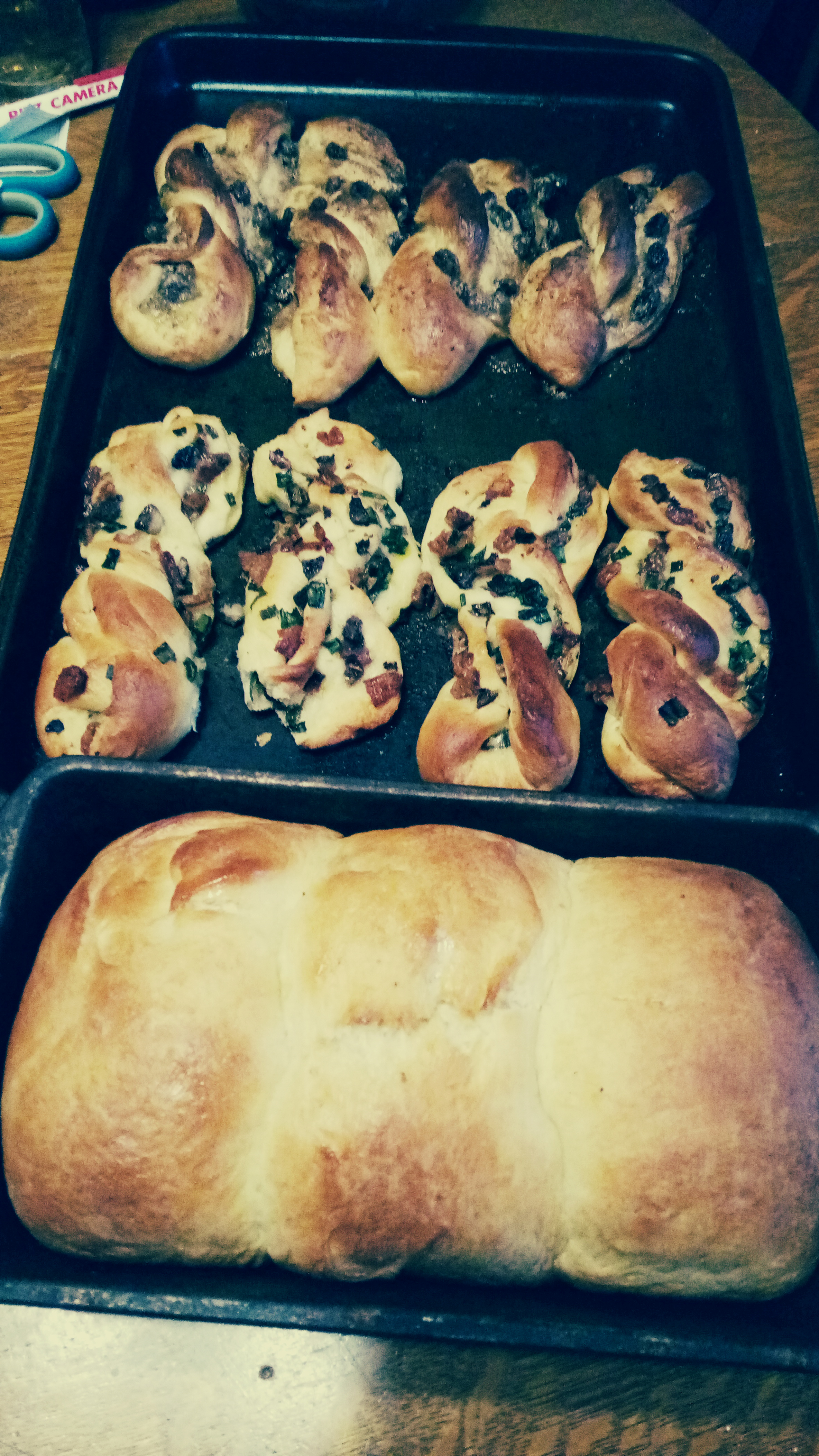 Serve the buns with a nice soup or as an appetizer or (if you make the sweet ones) as dessert or breakfast. The loaf is lovely with soups also, plain or buttered or sliced and used as sandwiches with the chicken salad you made yesterday of as tea sandwiches with simple butter and thinly sliced cucumbers, cut into triangles, of course.