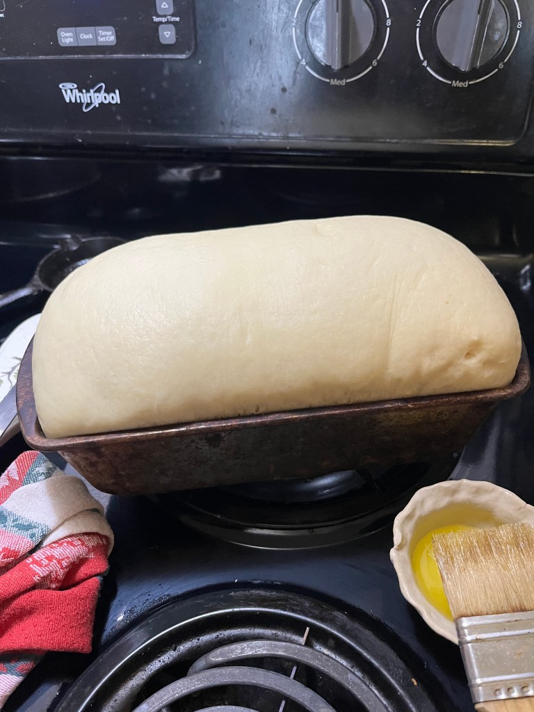 Or you can just make a simple loaf like we did today. Let it rise, brush with butter, slit and bake.