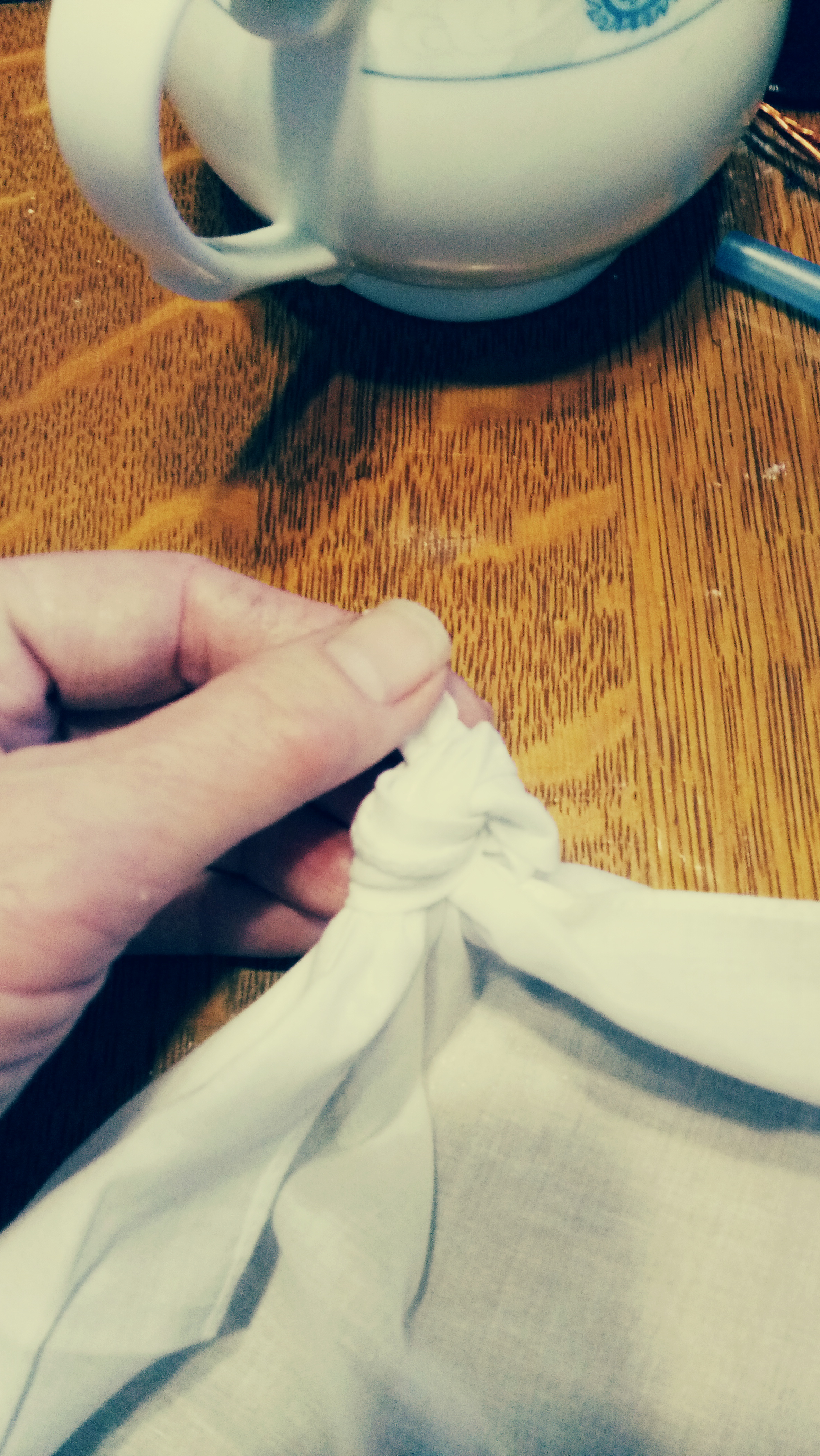 and repeat til all 4 corners are knotted. If it’s too small, make the knots smaller and closer to the corner. If it’s too big, make the knots bigger and further from the corner.