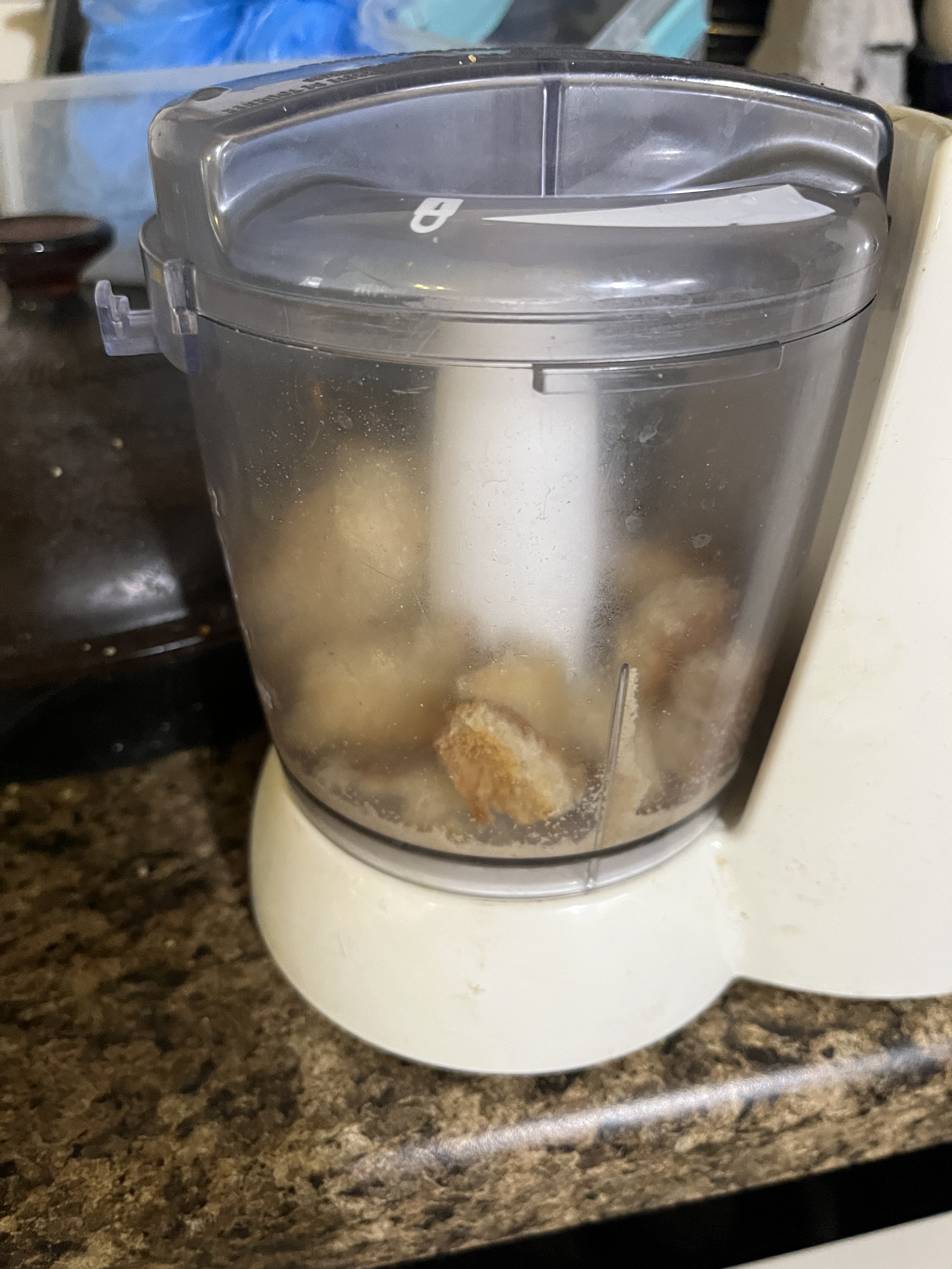 Whizz the stale to dry bread or crackers in there too to clean out the nut bits that stick to the sides.