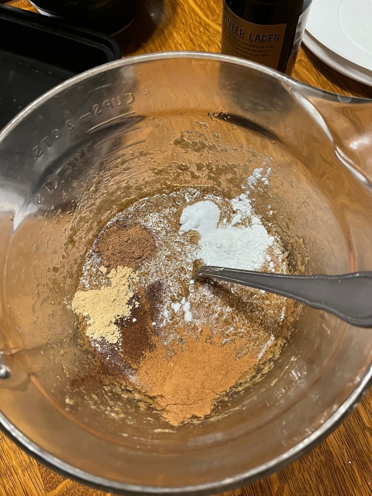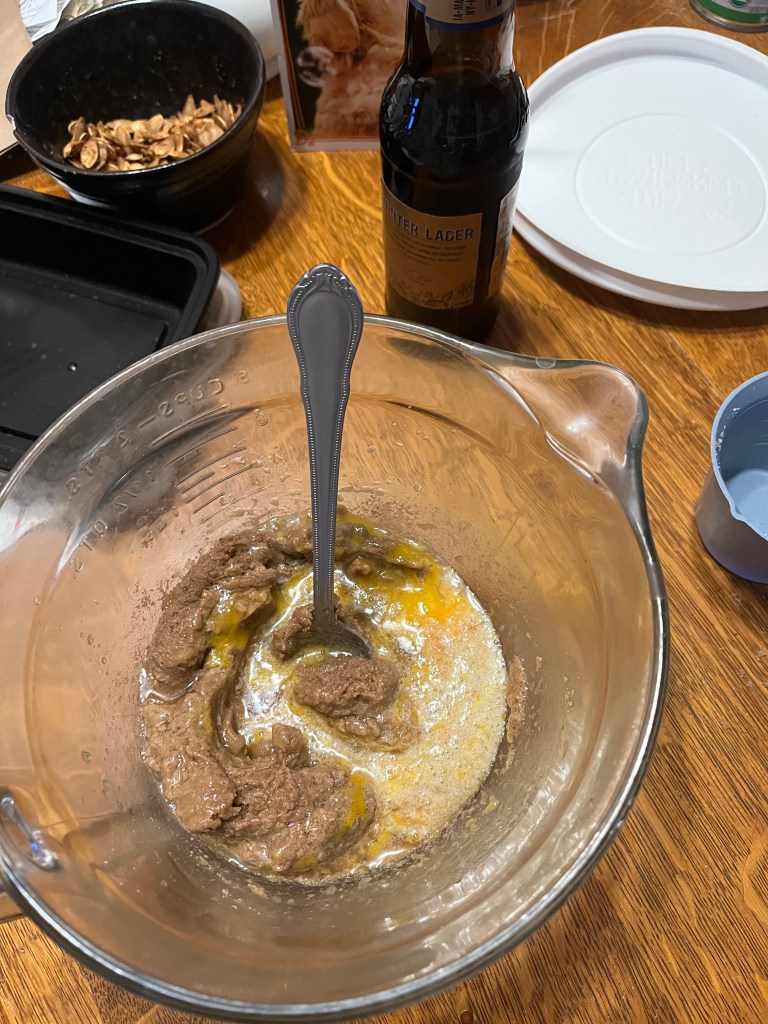 2 eggs (next time I’ll try 1. The other recipes called for 2 or 3 yolks and I didn’t want to store my whites for later)