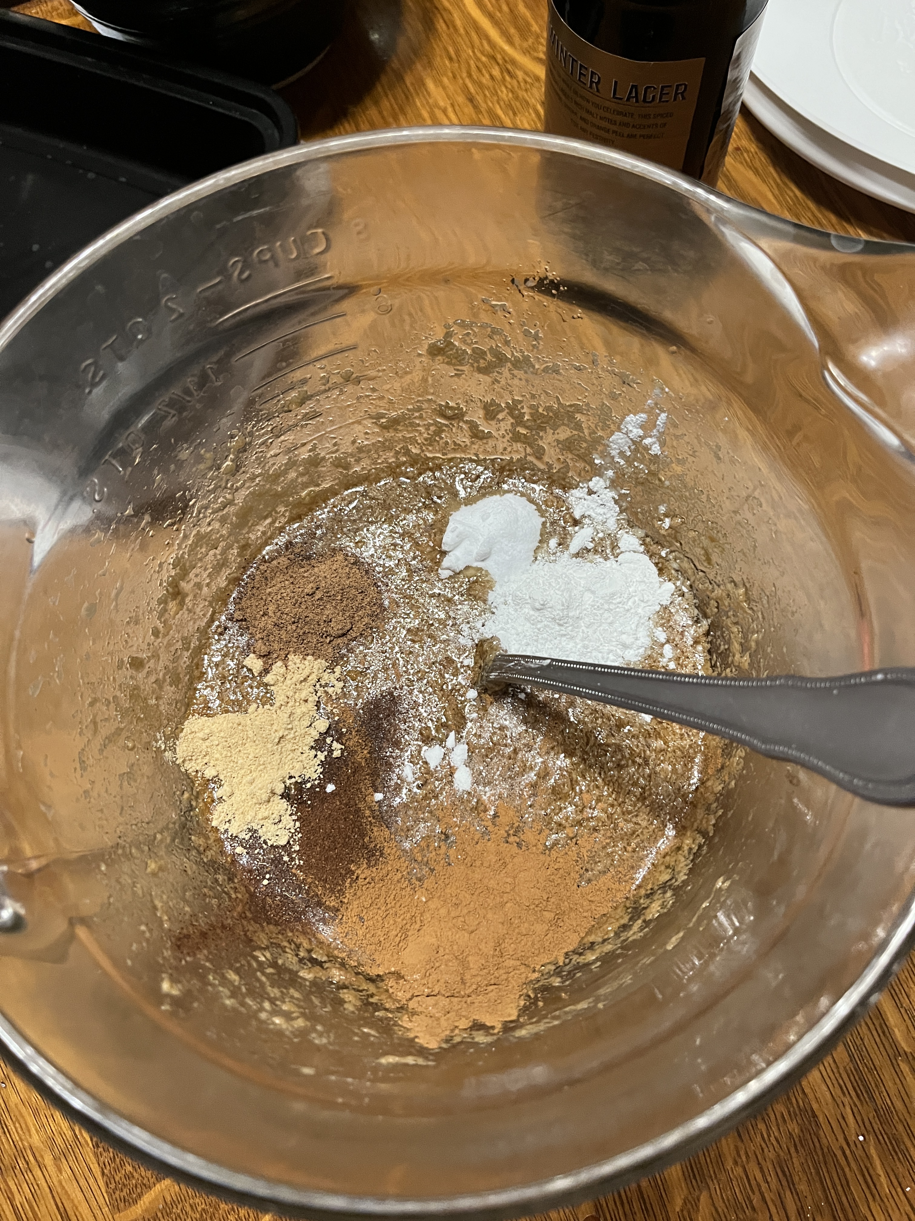 3 or 4 Tbsp Sack (a fortified wine, not available to everyone so I used a dark lager)