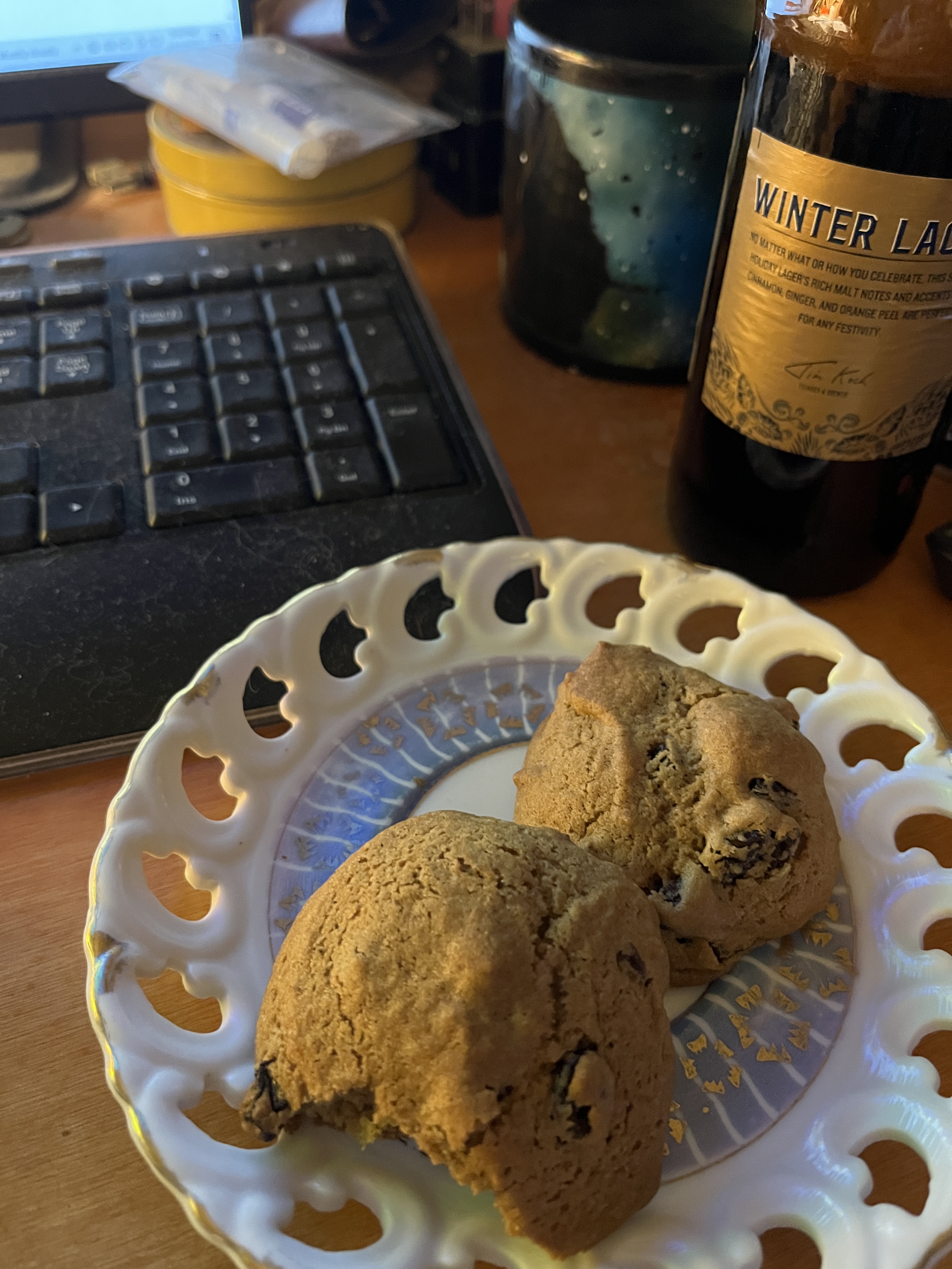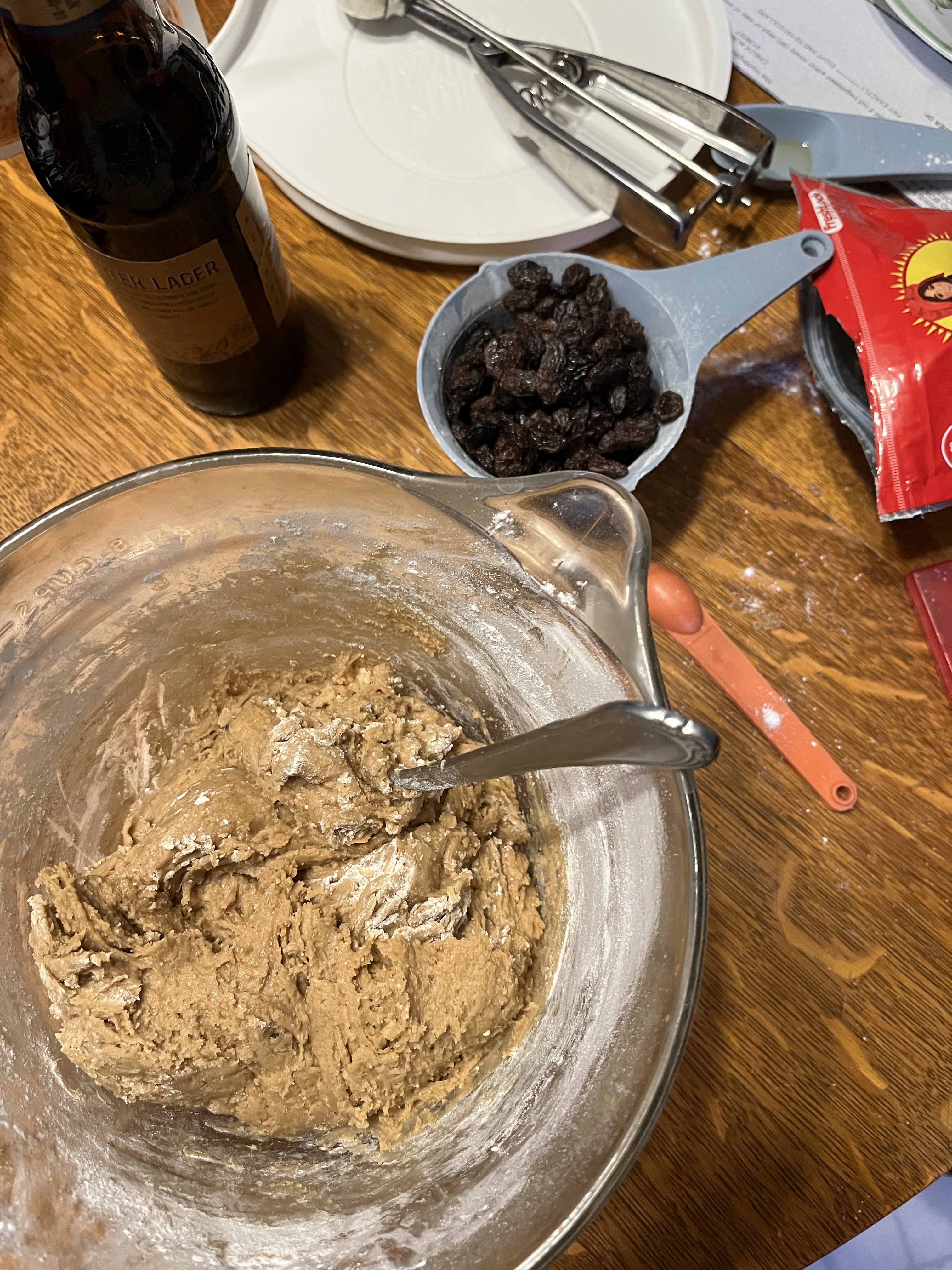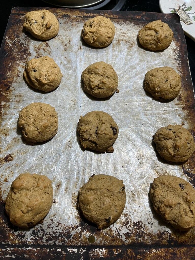 Once upon a time Yes, these are mentioned in the traditional tune made popular by Peter Paul and Mary. People, kids, adults, whoever, would go from house to house asking for soul cakes or any “good thing to make us all merry”. Apparently for every soul cake eaten a soul was freed from purgatory so making and eating these could be something of a community service for departed souls. Or they can be just a nice, seasonal treat. I remembered these on Halloween but was too busy to bake so I made them on All Saints Day (Nov 1st) so I could share them at work on All Souls Day (Nov 2nd) There are several recipes, some more like cookies, others more like biscuits and most using grams instead of cups in measurements so I fell back on my old, standard, chocolate chip cookie recipe (because the ingredients and proportions rather resembled it) and went from there. Here goes: