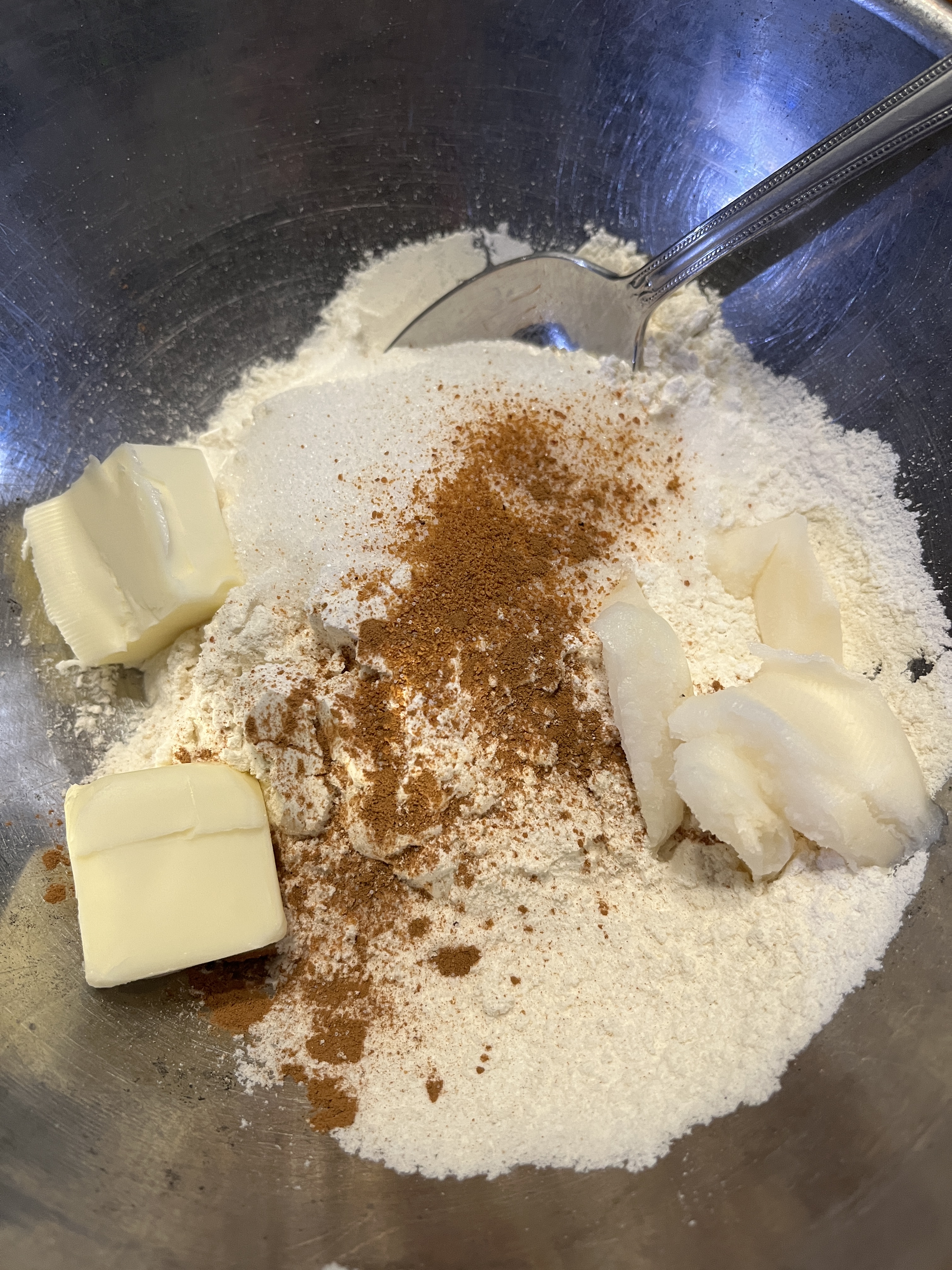 Cut the fats in until it’s like grainy meal.