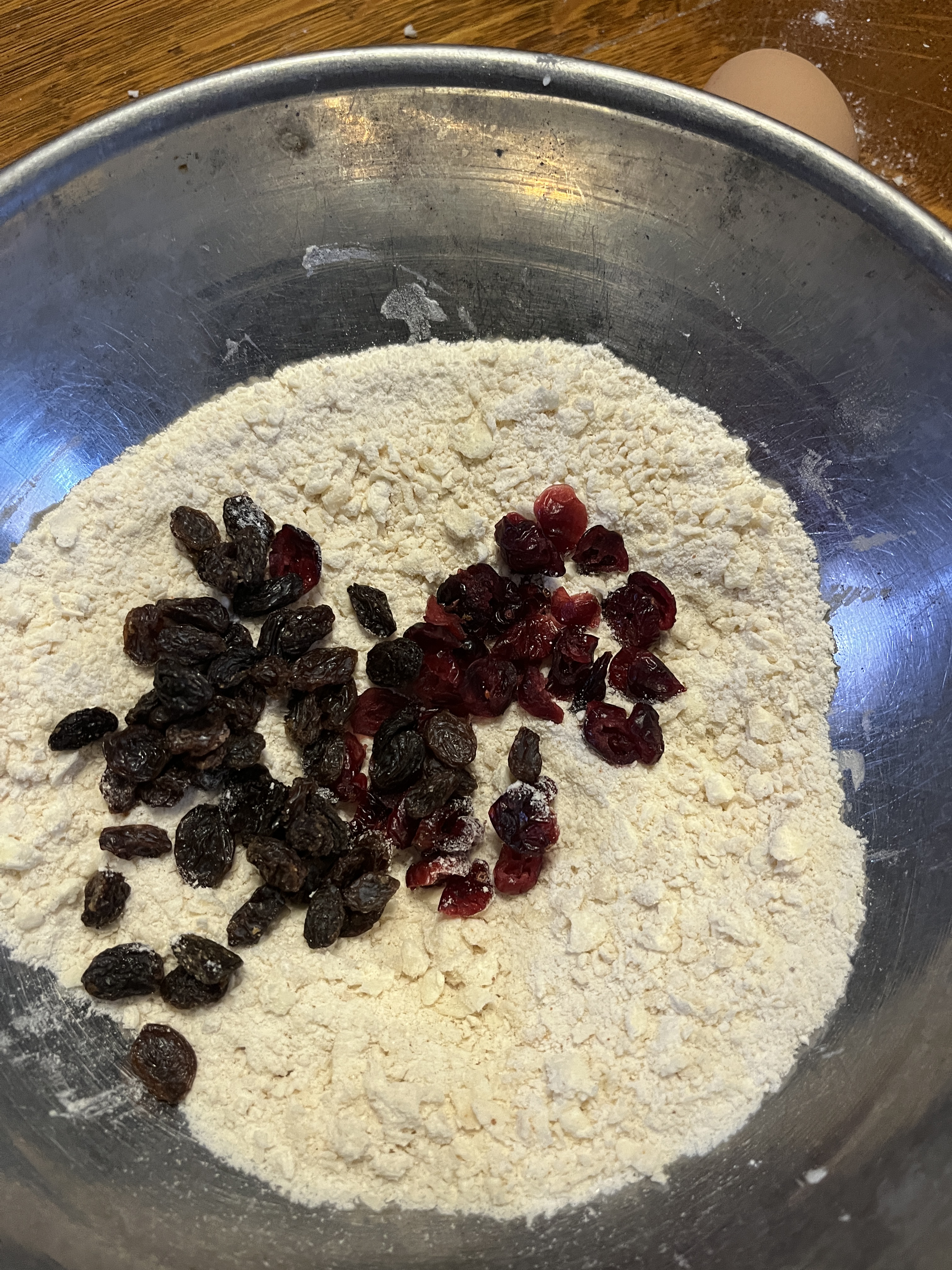 Add the dried currants or dried cranberries or raisins or what-have-you.