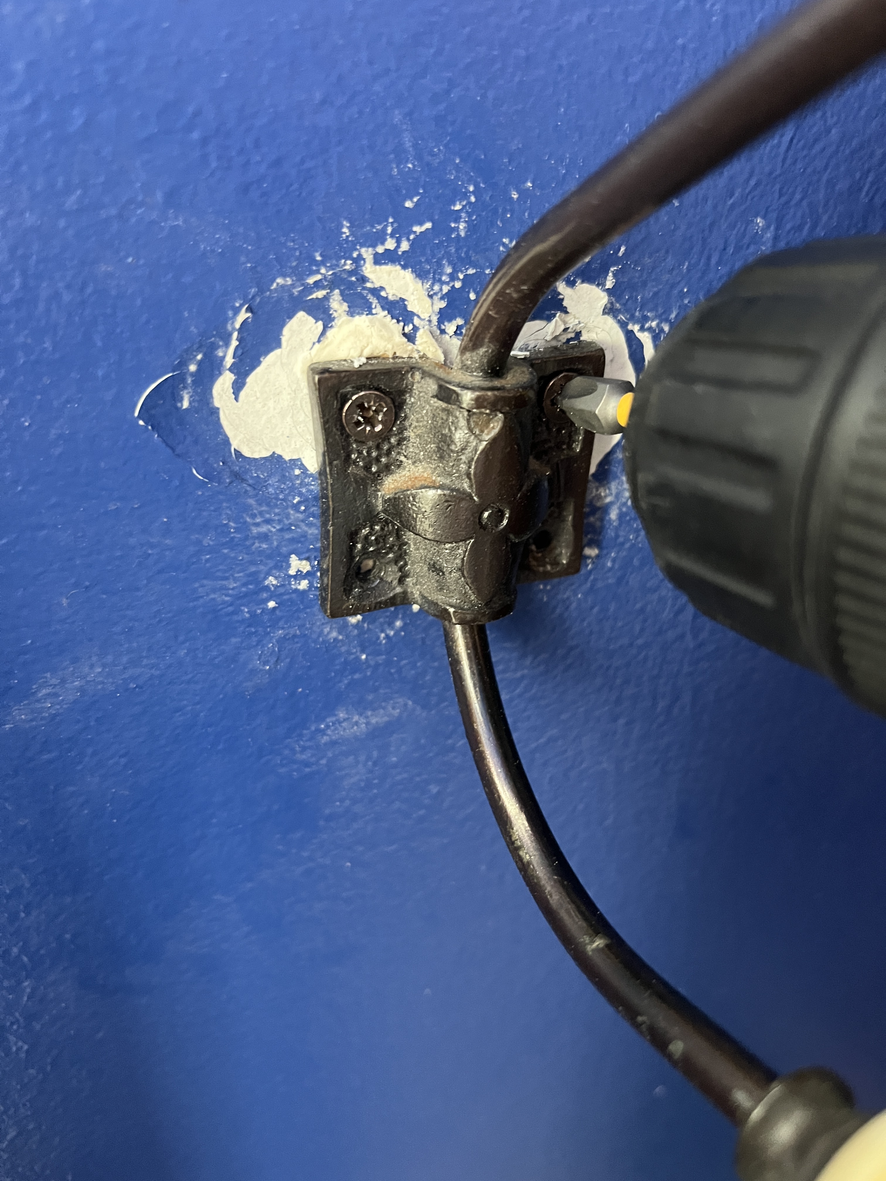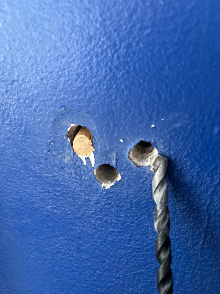 First thing was to get a masonry bit so I could drill into that wall. Got it. Did a bad job on the first hole and had to do it right. Then I got distracted for a bit over a year and a half before I could do the second correct hole.