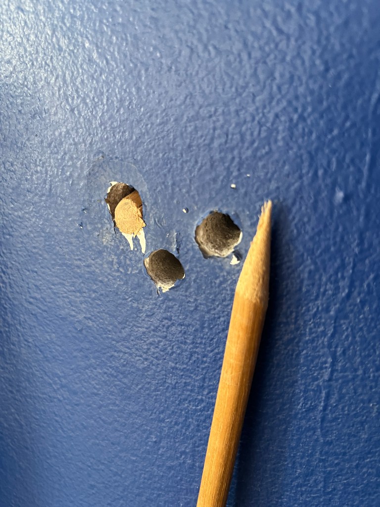 so I could hammer it in flush to the wall surface, wedging the wood into the holes.